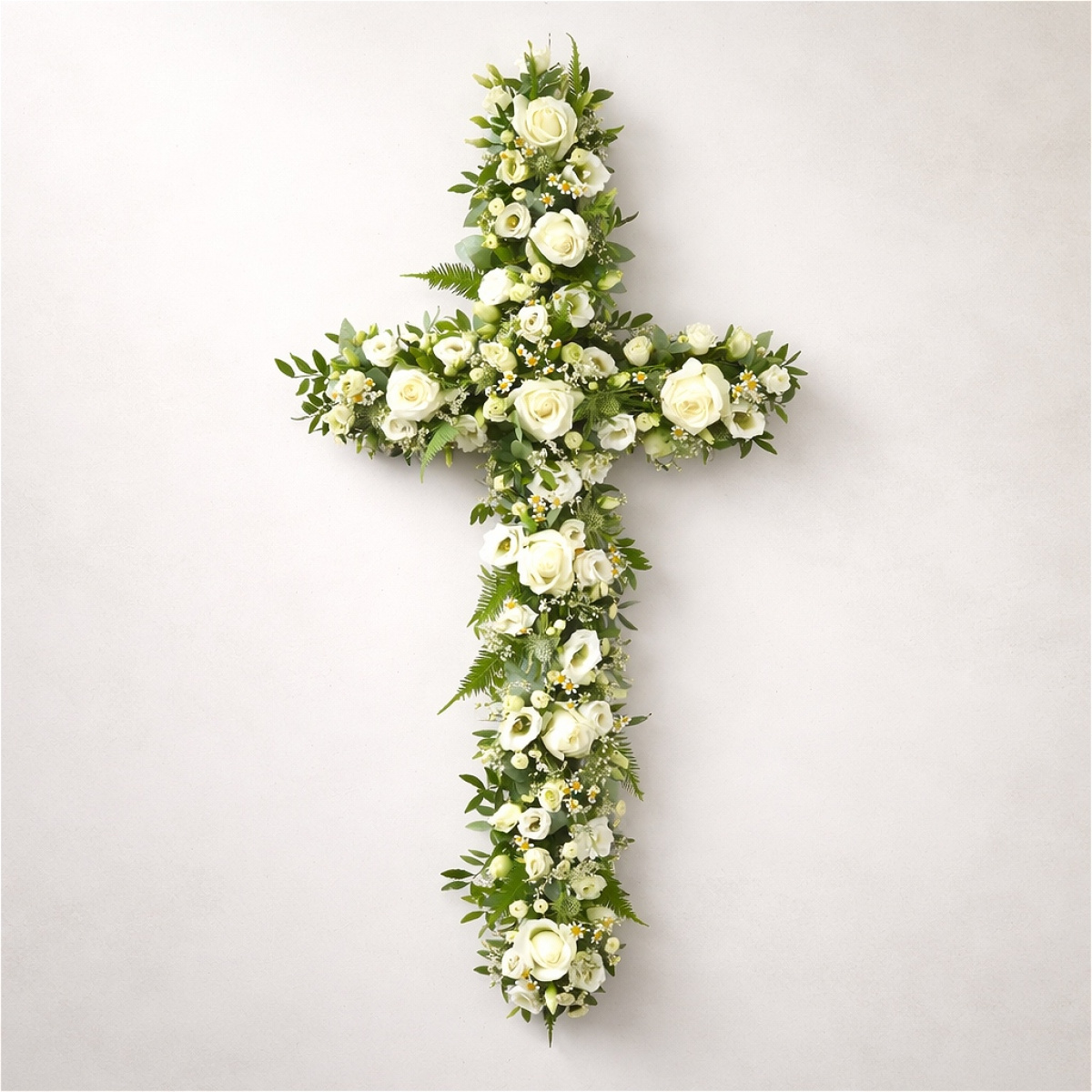 funeral flower cross Irthlingborough, sympathy flowers Northamptonshire, funeral tribute cross, condolence flowers delivery.